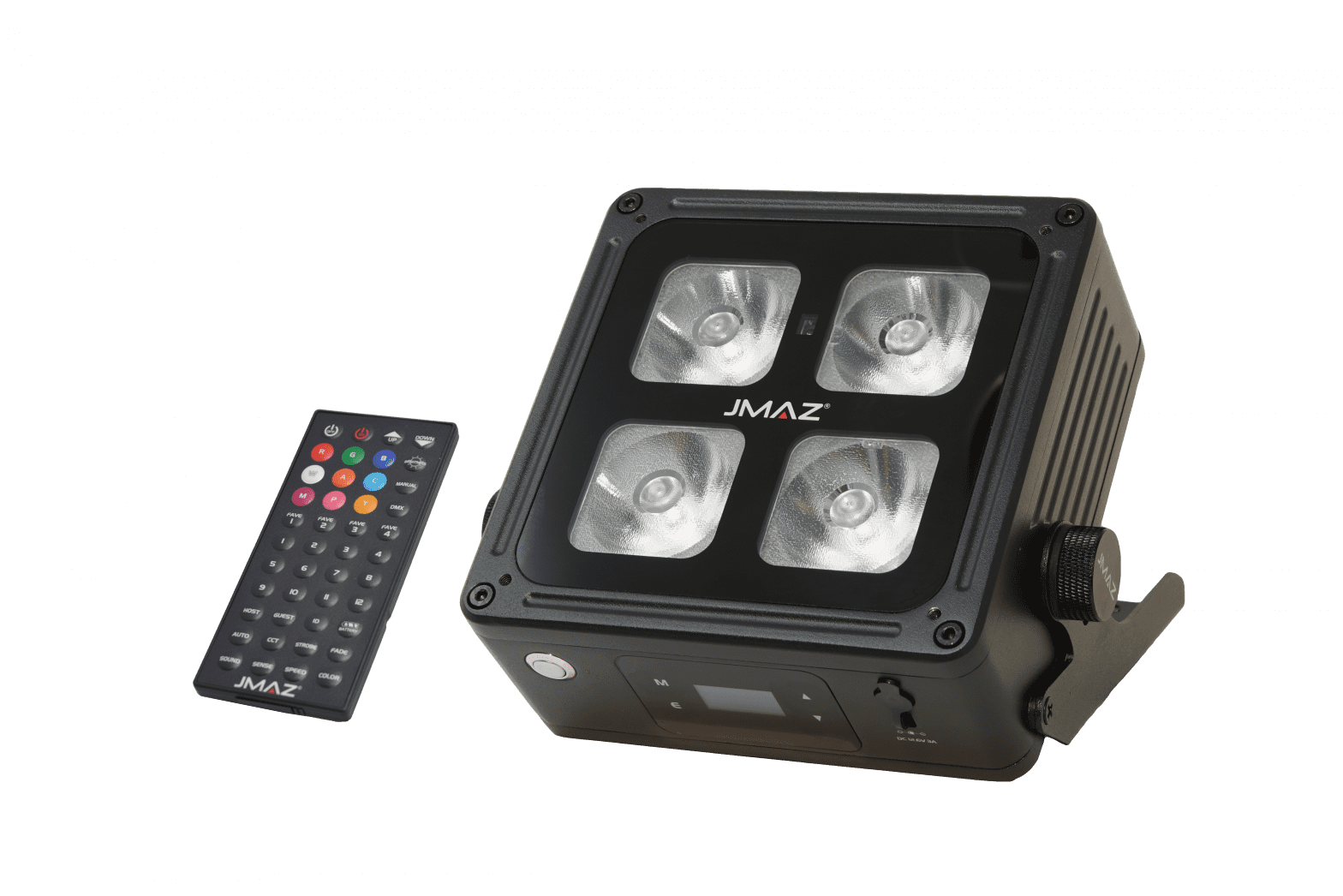 The JMAZ MAD PAR RB 80W RGBAL+C LED Swappable Battery Powered Outdoor Uplight offers versatile, vibrant lighting with 80W RGBAL+C LEDs and an IP65 outdoor rating. It provides up to 16 hours of battery life (48 hours in saving mode) and features 73 color presets, 50 sound-active modes, and 72 fade programs. This uplight includes wireless DMX and IR remote control, a diffuser, and a swappable battery for extended use.